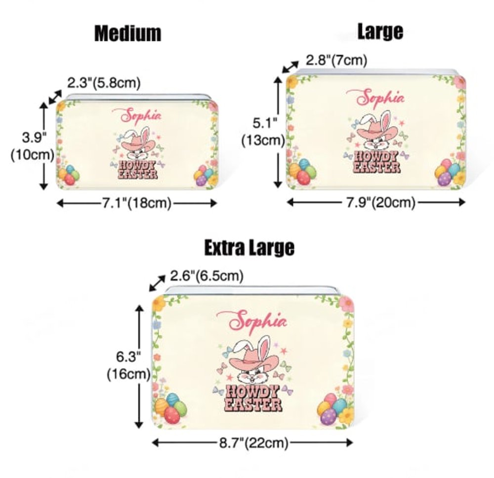 Personalized Howdy Easter Cute Bunny Easter Biscuit Tin Box with Name Easter Party Easter Gift for Children