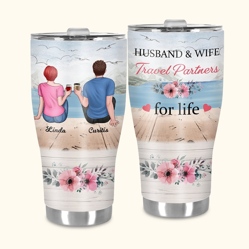 Personalized Husband and Wife Travel Partners for Life 30oz Names Curved Tumbler with Straw Anniversary Valentine's Day Gift for Couple