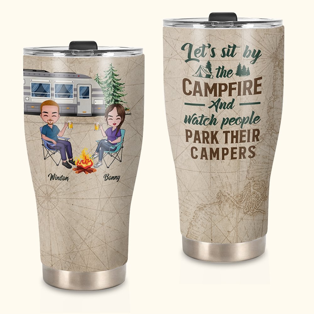 This is a tumbler designed around the theme of couples camping, with the personalized quote and characters, it is attractive for those who like camping or want to stand out from the crowd.