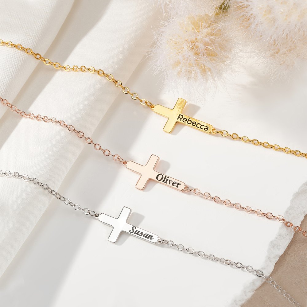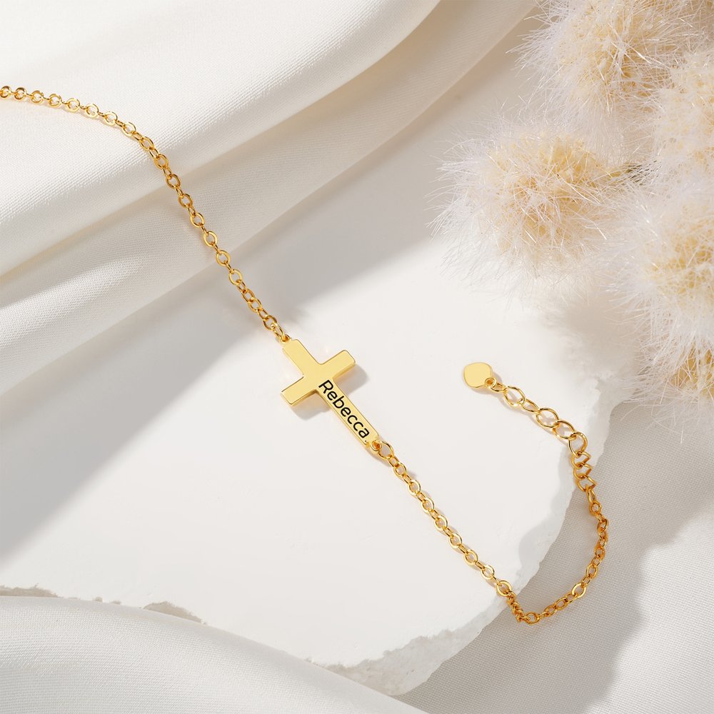 Inspired by a unique cross design, this bracelet perfectly blends faith and individuality. Each bracelet can be customized with a name or baptism date for a personal touch, making each piece of jewelry a unique work of art that reflects your personality and style.