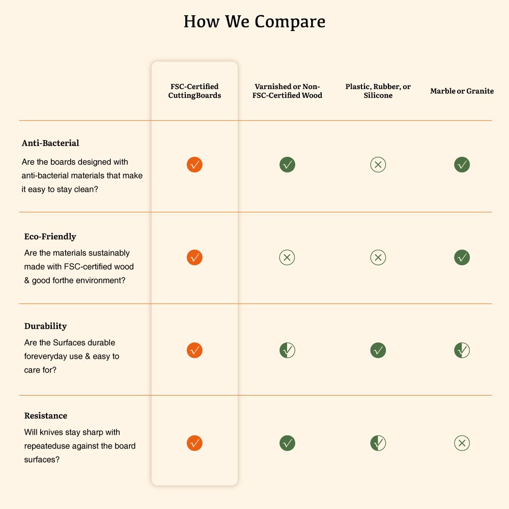 Being made from FSC-certified bamboo, this cutting board is an eco-friendlyeco-friendly choice, giving it an elegant and natural look and ensuring its durability. Bamboo is a renewable resource that grows quickly and sustainably, making it a great alternative to traditional wood. By choosing this cutting board, you get a high-quality product and contribute to environmental conservation.