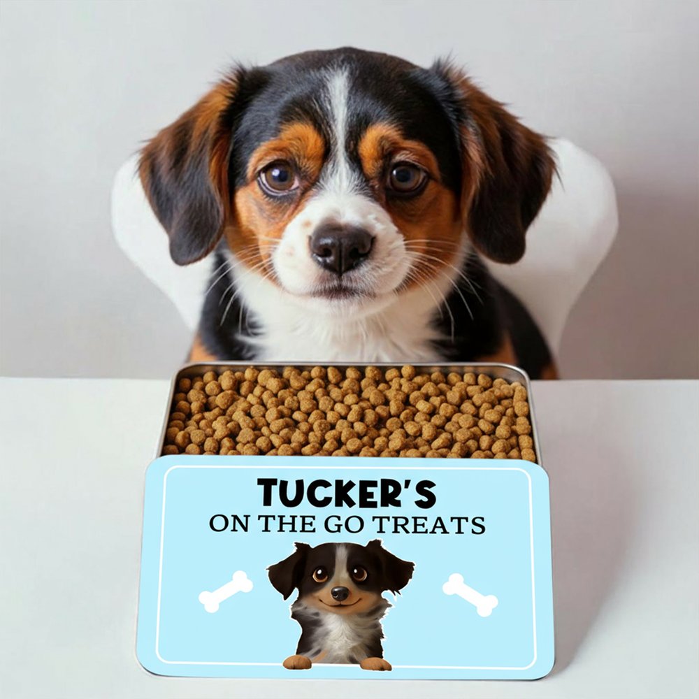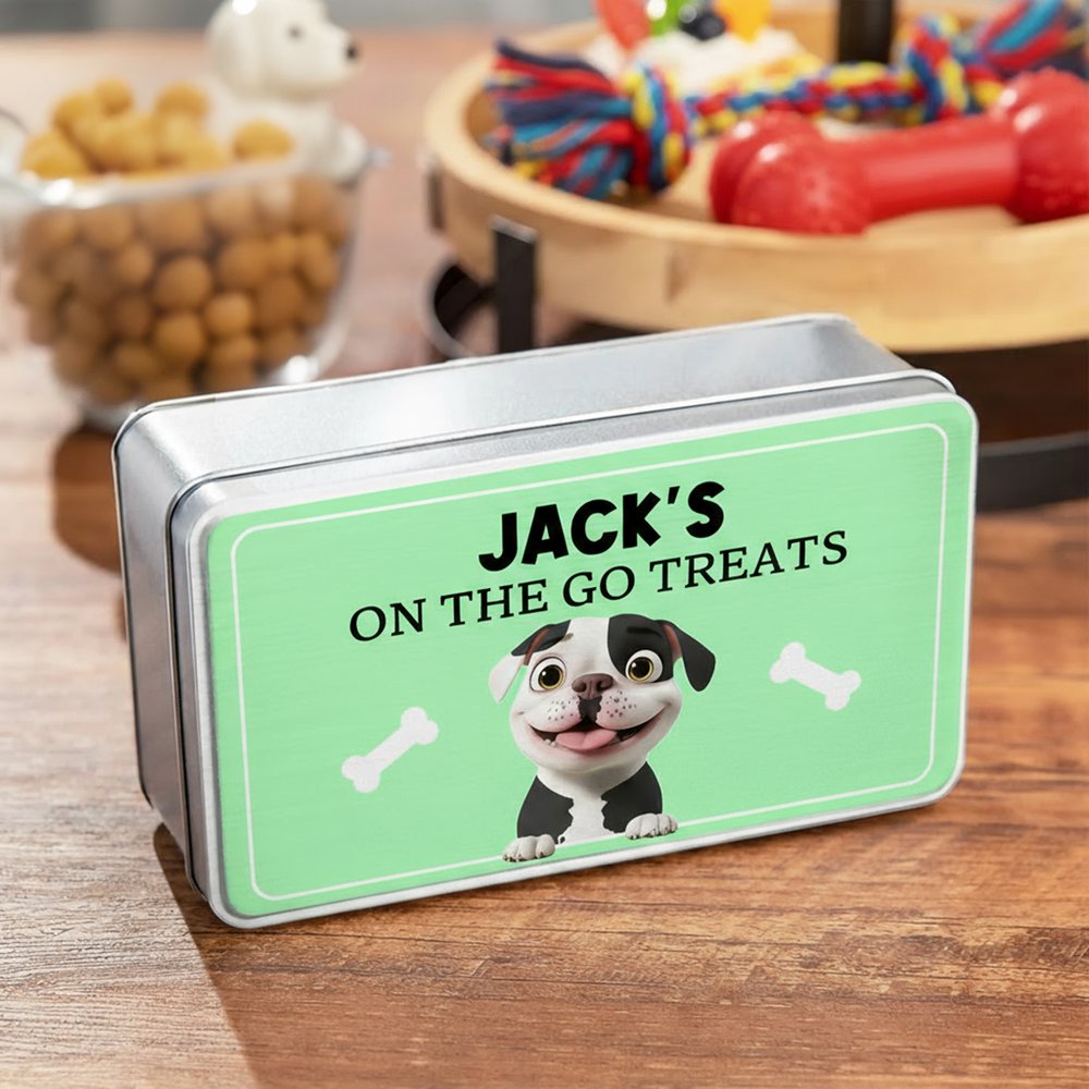 The treat box features an adorable 3D cartoon dog design, allowing you to customize your furry friend’s cartoon image, name, and text on the box. Available in three different sizes and a variety of background colors, this unique design makes storage both fun and personal. Every time you reach for your pet’s favorite treats, the charming look of the box is sure to bring a smile.