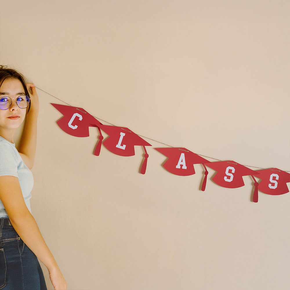 This decoration is suitable for a variety of indoor scenes, such as living rooms, bedrooms, dining rooms, or graduation parties. It can be hung on the wall as a wall decoration and as a graduation decoration element to add interest and personality to the space.