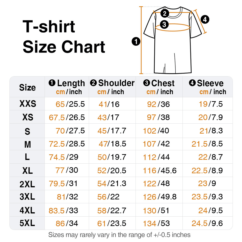 | Måling: | T-skjorte for barn - 3-4 år, 5-6 år, 7-8 år, 9-10 år, 11-12 år, 13 år T-skjorte - XXS, XS, S, M, L, XL, 2XL, 3XL, 4XL, 5XL Genser - XXS, XS, S, M, L, XL, 2XL, 3XL Hettegenser - XXS, XS, S, M, L, L, XL, 2XL, 3XL Hettegenser for barn - XXS, XS, S, M, M, L, XL, 2XL, 3XL |