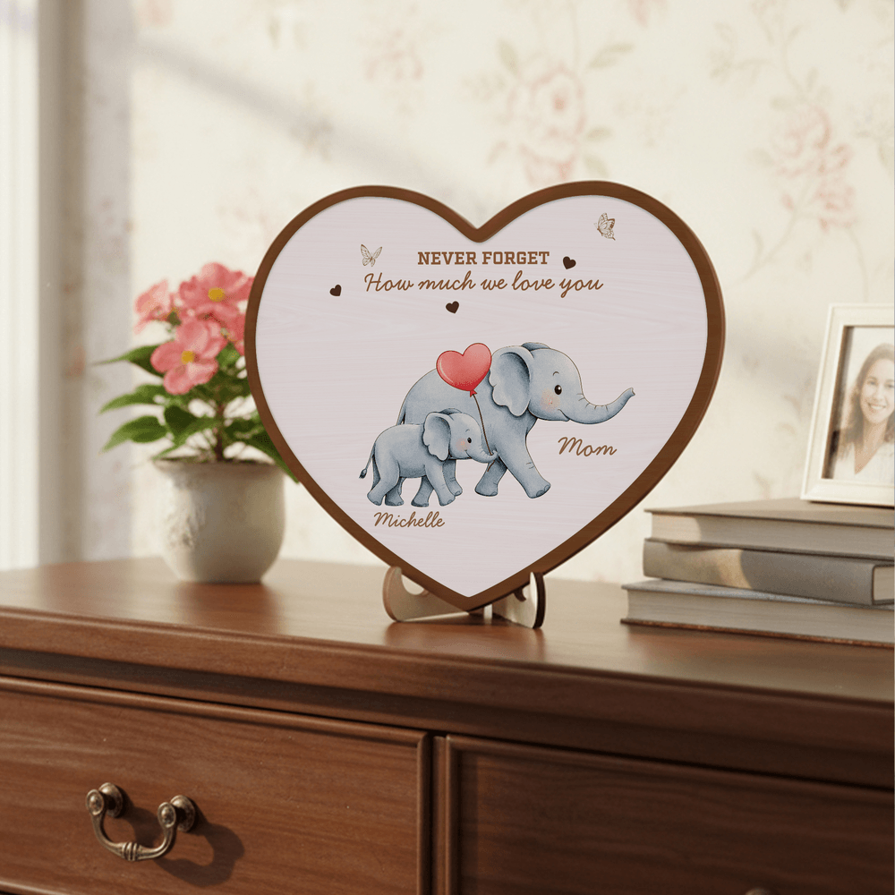 Dette dekorative smykket har en elefantmor og en elefantunge som det sentrale motivet, og symboliserer på en vakker måte ubetinget kjærlighet, styrke og varig kameratskap. Det milde bildet av elefantmoren som beskytter ungen sin, skaper et rørende uttrykk for en mors hengivenhet. Med et hjerteformet omriss og en varm tekst kan du også tilpasse navnet ditt, noe som gjør det til en meningsfull måte å uttrykke kjærlighet og takknemlighet til en mor på.