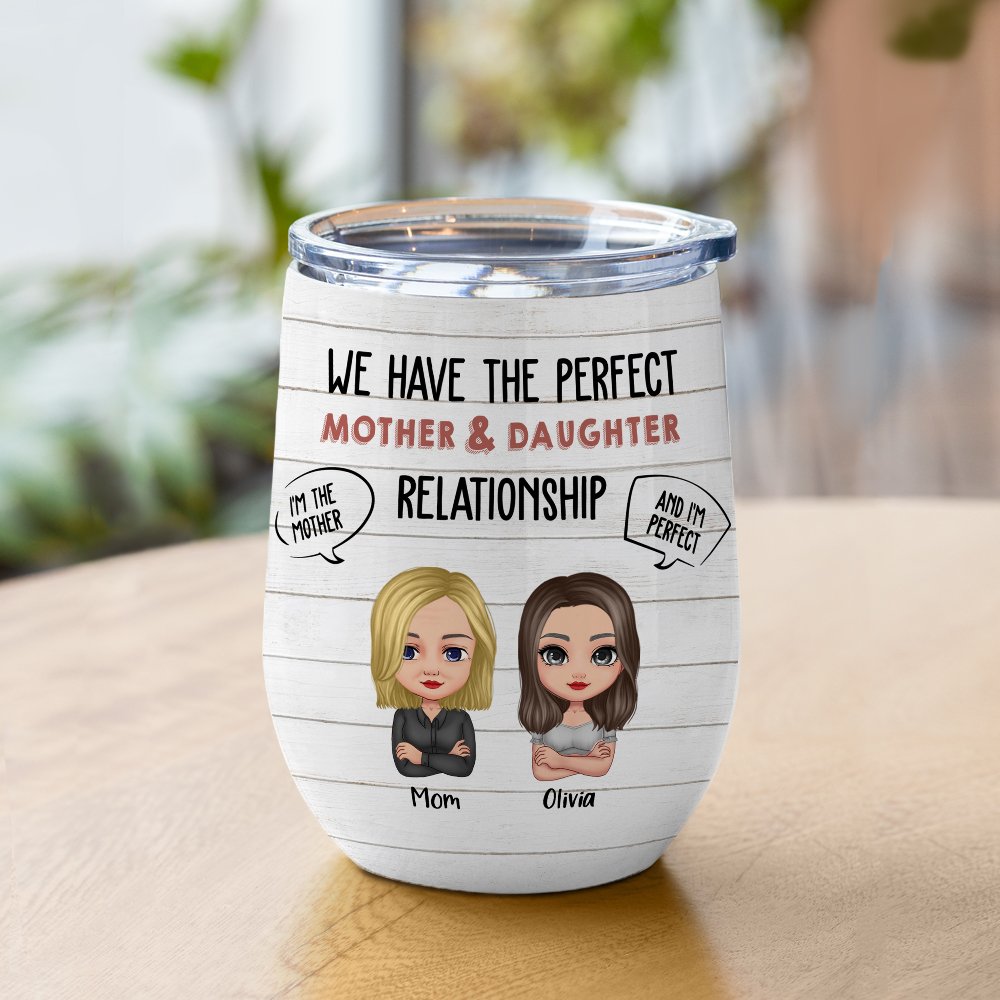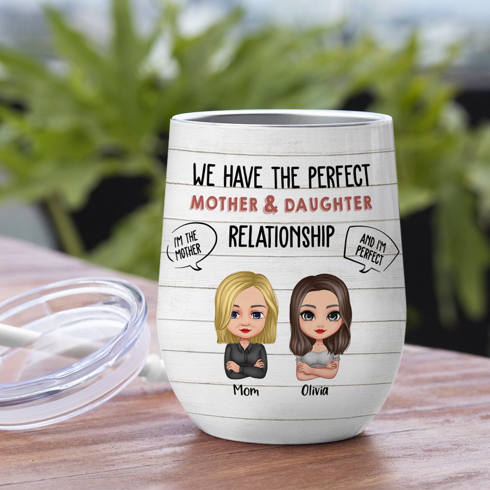 Personalized Perfect Mother and Daughter Relationship Love My Mom Wine Tumbler Thanksgiving Day Gift Easy to Clean