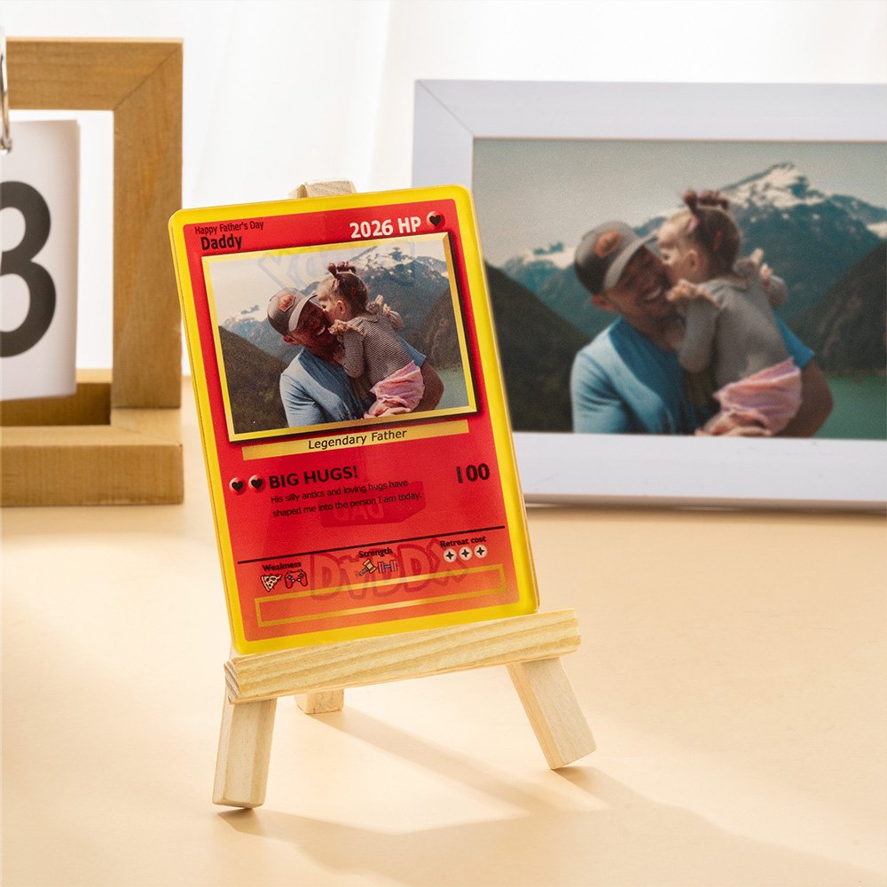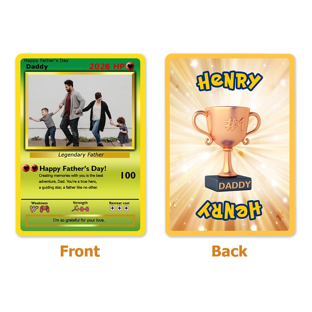 Our personalized photo classic TCG poke card features a charming design, allowing you to customize multiple texts and a photo. This one-of-a-kind card can be tailored to reflect your father's personality, making it a truly unique keepsake that stands out among traditional Father's Day gifts.