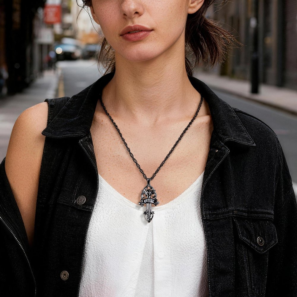 Designed as a personalized necklace, it speaks to women who value independence, protection, and inner strength. With the custom name and symbolic blend of blade and florals, it works beautifully as a birthday gift, anniversary surprise, or friendship keepsake for any medieval style or vintage aesthetic lover.