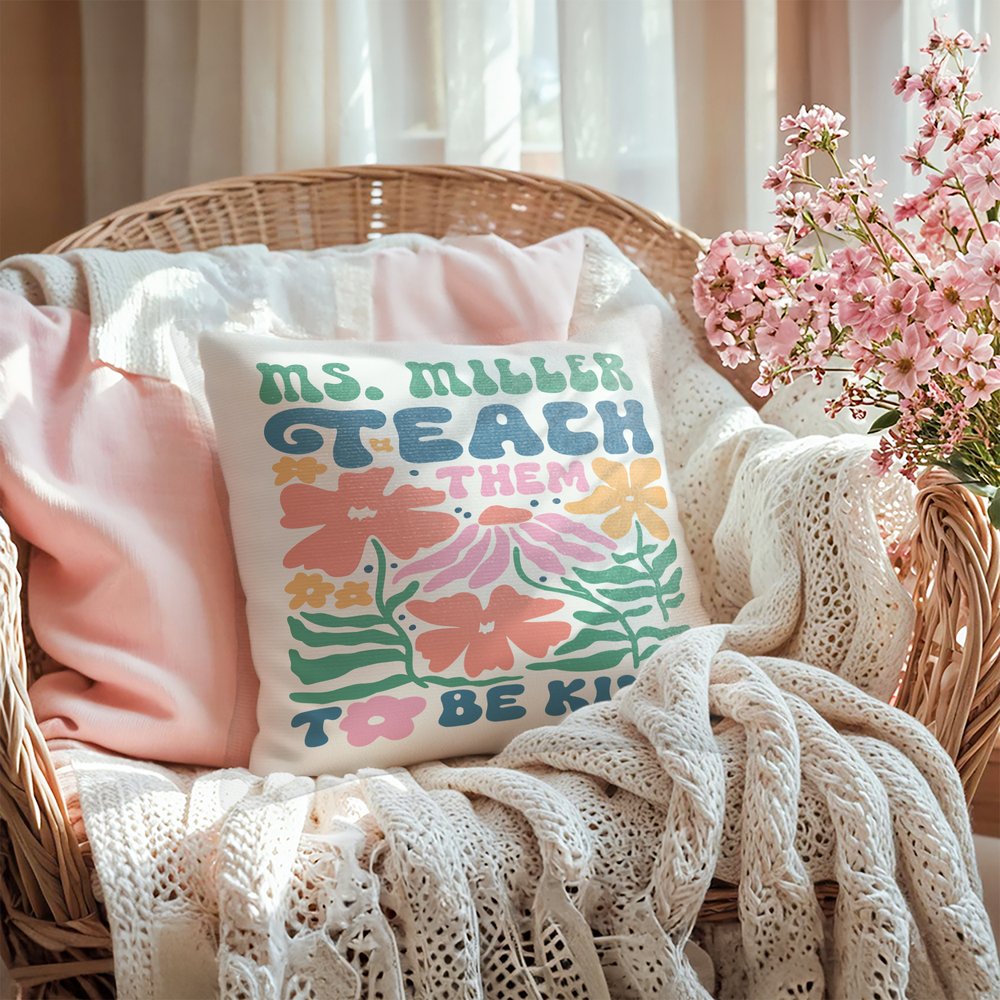This throw pillow cover features flowers representing teachers as its core design element. The vibrant and varied floral shapes are customizable with the teacher's name or a special title, showcasing their respect for teachers. The overall style is elegant yet warm, and the vibrant colors are understated. This throw pillow cover not only highlights the gentle spirit of the teaching profession but also serves as a unique vehicle for the bond between teachers and students, adding a unique touch of humanity to any home.