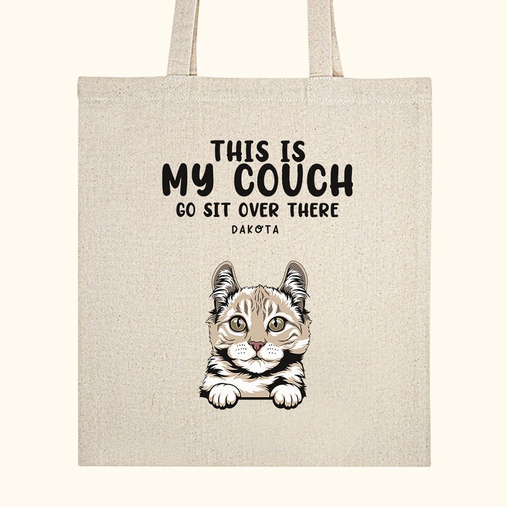 This bag features a unique and eye-catching design that showcases 1-6 cute pets with the playful phrase "This Is My/Our Couch Go Sit Over There". Each pet is lovingly illustrated with charming details, from their curious expressions to their fluffy body. The vibrant colors and whimsical patterns add a touch of joy and warmth.