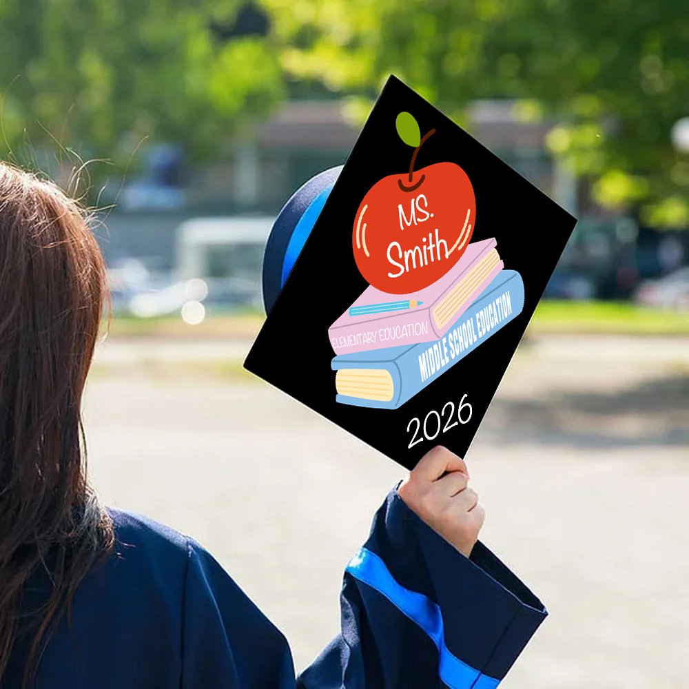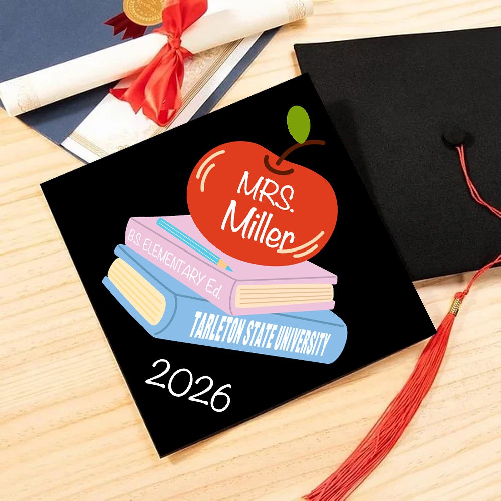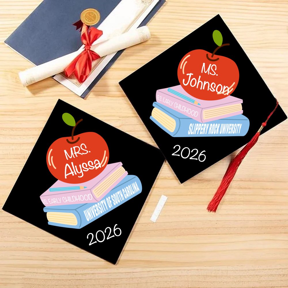 Designet på denne dekorasjonen er inspirert av "undervisningstid". Den smarte kombinasjonen av søte epler og bokmønstre er ikke bare en enkel dekorasjon, men symboliserer også begrepet utdanning. Den kan også tilpasses med navn, grad, avgangsskole og avgangsår for den nyutdannede, som om den forteller historien til de nyutdannede underveis. Hver eneste bit av informasjon kondenserer deres svette og harde arbeid.