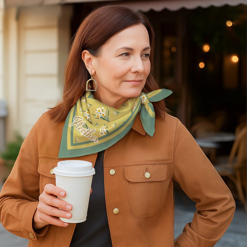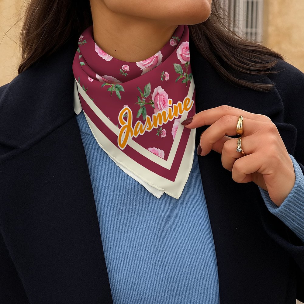 This satin scarf is designed with a "retro romance" as its core, featuring a fluttering floral pattern of birth flowers from different months, paired with retro tones, showcasing a gentle and elegant style. The name can be printed in the corner of the scarf, retaining the classic beauty of vintage floral patterns while also giving the handkerchief a "personal identification" attribute through an exclusive name.