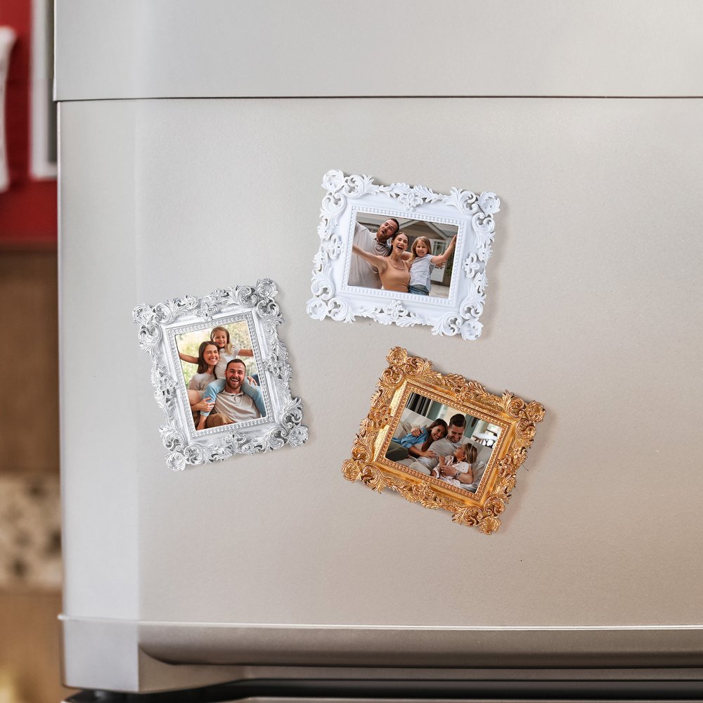 This retro photo frame fridge magnet features a classic photo frame shape with antique carved textures along the edges, creating a strong sense of nostalgia. It is available in two styles—horizontal and vertical—making it suitable for a variety of photo sizes, and can beautifully display both landscape and portrait pictures.