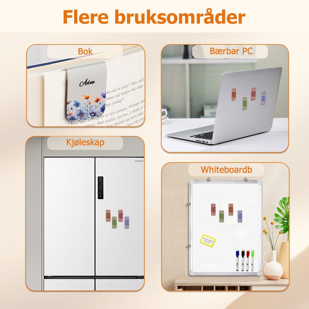 Laget av materialer av høy kvalitet med en delikat overflate og eksklusiv tekstur. Den innebygde magneten holder bokmerket sikkert på plass uten å skade boken. Dette forhindrer at det faller ut eller bøyer sidene, og gir en perfekt balanse mellom brukerkomfort og bokbeskyttelse.
