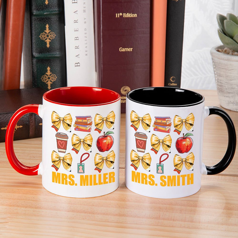 Our mugs feature classic patterns such as yellow bows, books, coffee, work IDs, and apples. These elements perfectly represent the nurturing and educational role of teachers, making them ideal gifts to express gratitude.