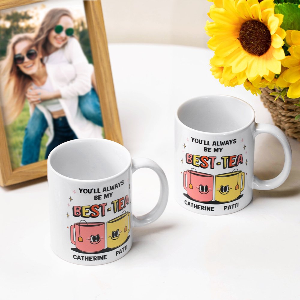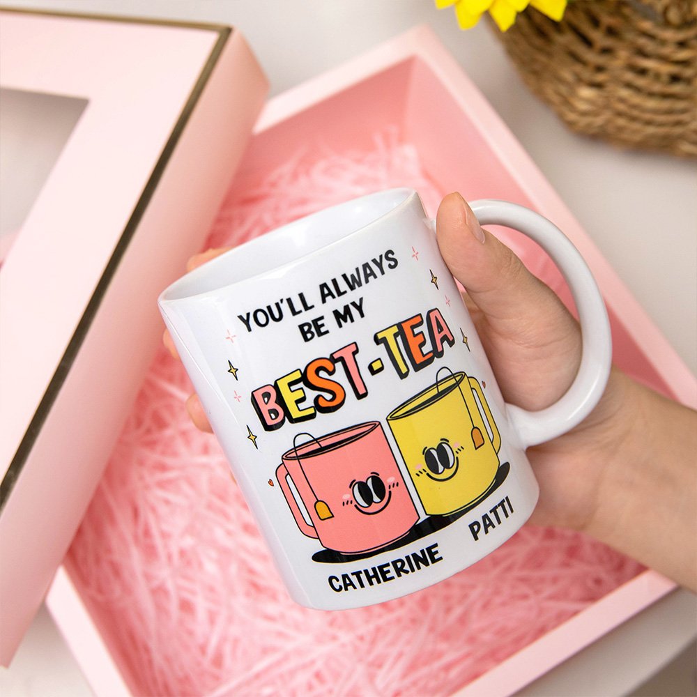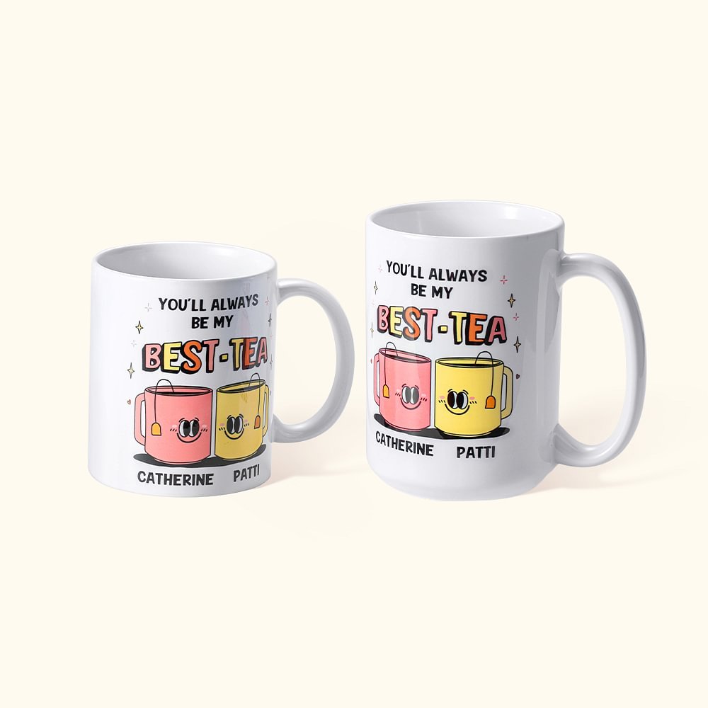 Tegneseriefigurdesignet og bestie-sitatet gir dette allerede bedårende kruset et ekstra snev av innfall og moro. Kruset vårt er utsmykket med et nydelig vennskapssitat - you'll always be my best-tea, the best-tea er synonymt med bestie, og kruset vårt forteller de uuttalte ordene om båndet deres. Med sine livlige farger og lekne motiv vil det garantert få din beste venn til å smile hver eneste morgen. Enten de drikker morgenkaffe eller slapper av med urtete om kvelden, vil dette kruset være deres faste følgesvenn og minne dem på deres evige vennskap.