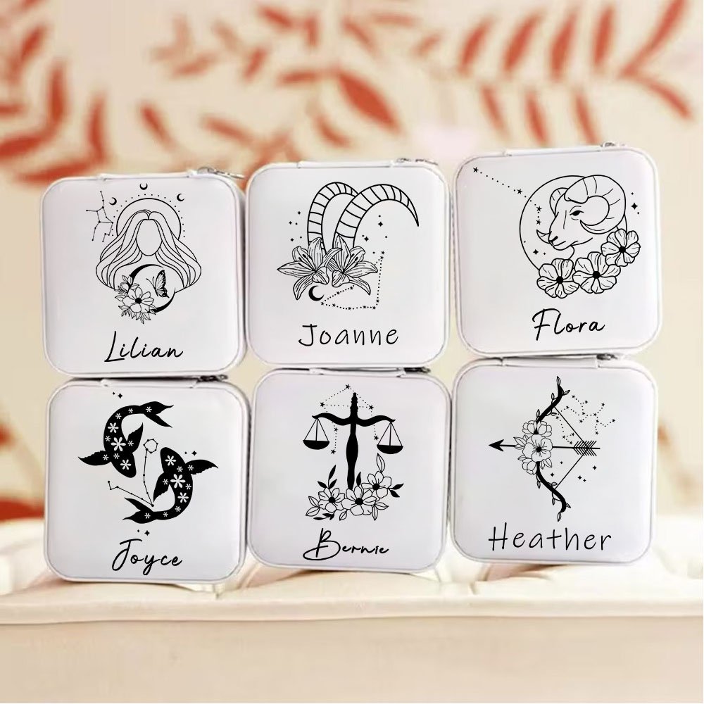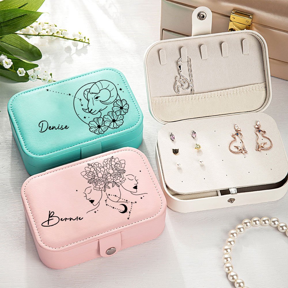 This jewelry box is carefully designed and inspired by the twelve constellations. Each constellation pattern can be customized with a name, making each jewelry box a unique gift. Available in two sizes (small size is easy to carry, and large size has more capacity) and three classic colors.